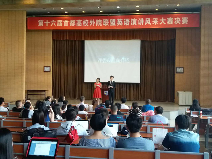 ——5月7日下午两点,第十六届学而思杯首都高校外院联盟英文演讲大赛决赛在北京外国语大学逸夫楼三阶拉开了序幕。北京外国语大学必赢766net手机版张威、周杜娟、张小东、侯雯钰以及中央电视台“希望之星”英语风采大赛北京赛区陈昭华担任本次比赛的评委。