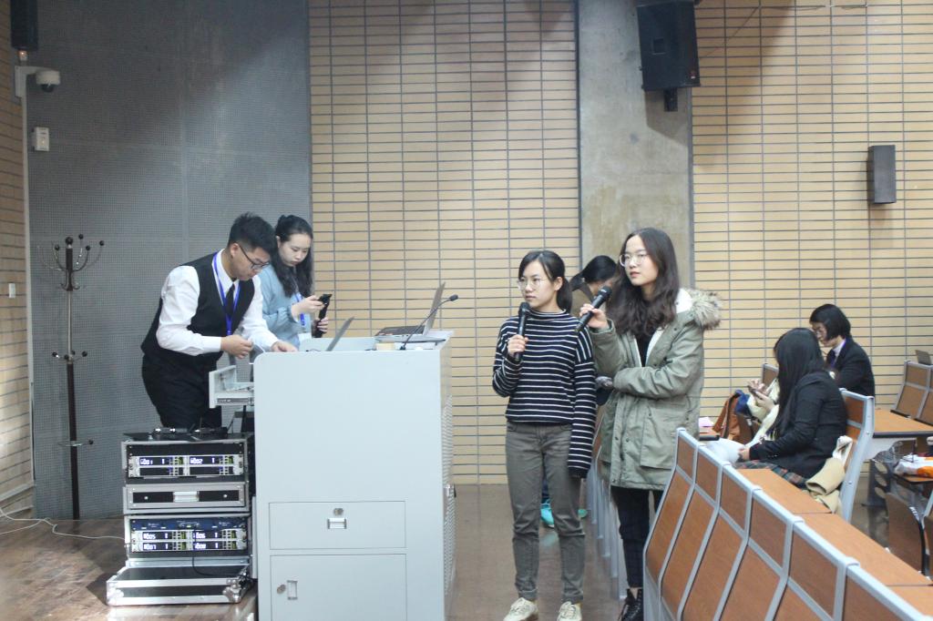 本届配音大赛总决赛由北京外国语大学必赢766net手机版团学联学术部主办,并邀请到了著名配音演员付博文老师与毛毛头老师、英语专业讲师夏燕老师与孙维老师,以及上届配音大赛冠军於文漪同学至现场担任评委。本场比赛共分为自选片段配音与创意英文配音两轮比拼,评委老师们在每一轮比赛的最后都肯定了参赛者们的创意与表现,并为他们提出了中肯而具建设性的建议。现场参与同学在大饱耳福的同时,也收获了许多有关配音与英语口语的技巧与知识。