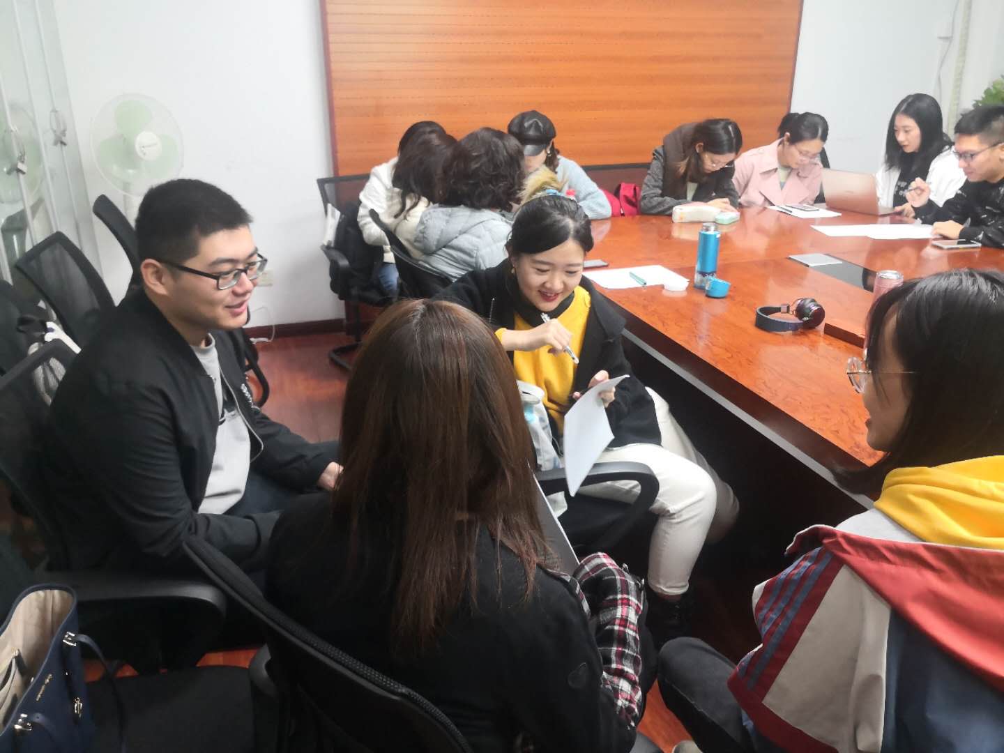 在主持人简单开场后,两个支部的同志进行了简单的自我介绍,增进彼此的了解。随后,两支部成员分为九个小组,由研究生口译支部的同志带领本科生支部同志深入学习讲话内容,探讨译文翻译策略。
